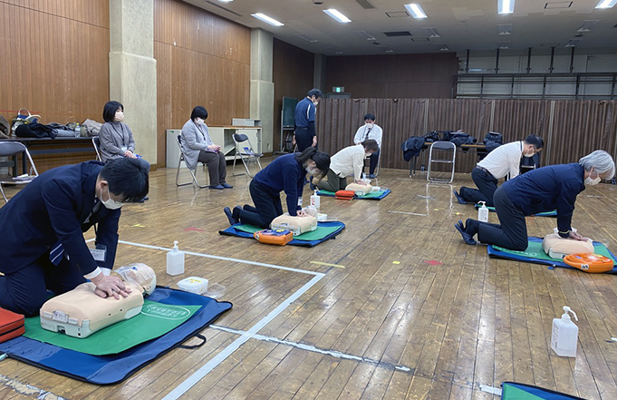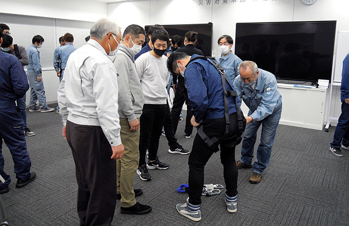 すべての業務において工事事故、交通事故「ゼロ」を目標に、常に高い意識をもって安全管理に努めています。新入社員に対しては特に安全管理の基本知識と技術について教育プログラムを用意し、労働安全衛生法に基づく教育も実施しています。