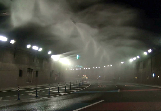トンネル内の環境維持のため適切な換気制御を行っています。またお客様が道路状況や交通状況などを的確に把握するうえで良好な視環境を確保できるよう照明設備を制御しています。万一、火災などが発生した場合、消火設備の制御を行います。